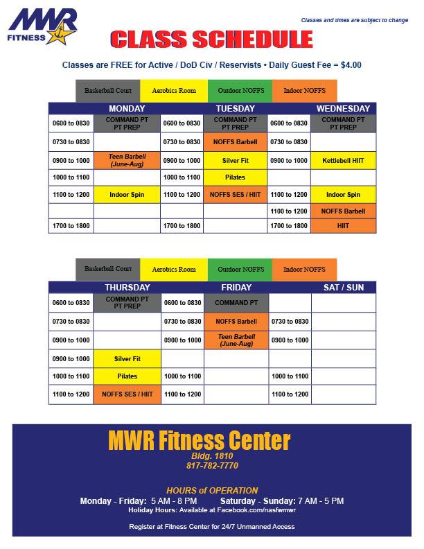 For more information or to register, please visit the Fitness Center with your military ID.